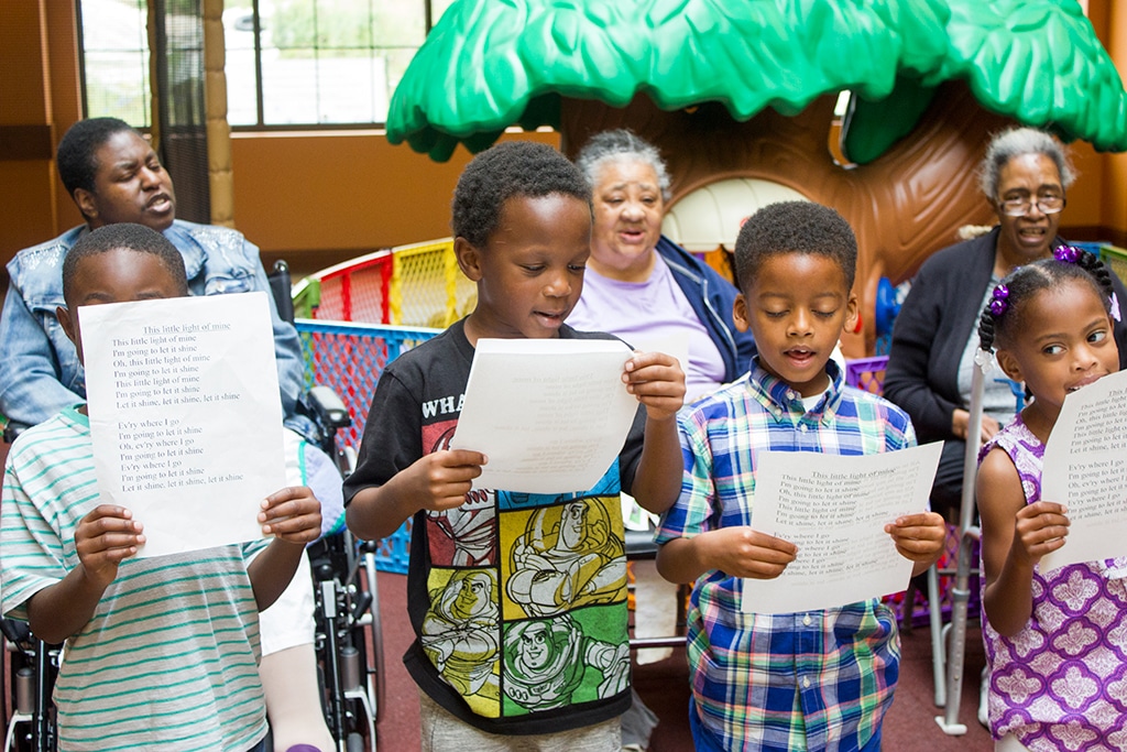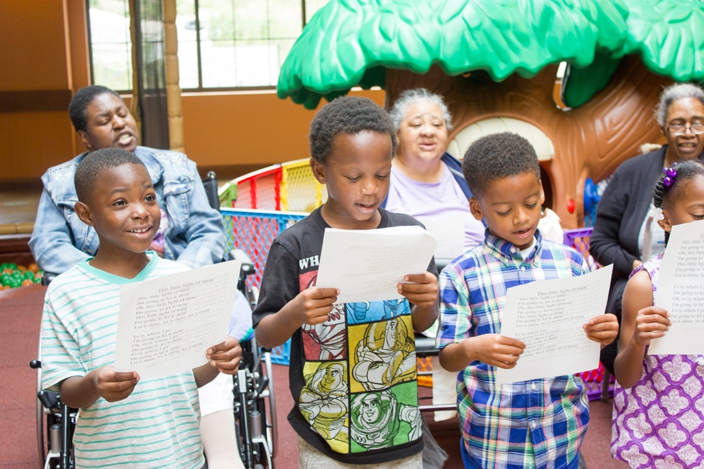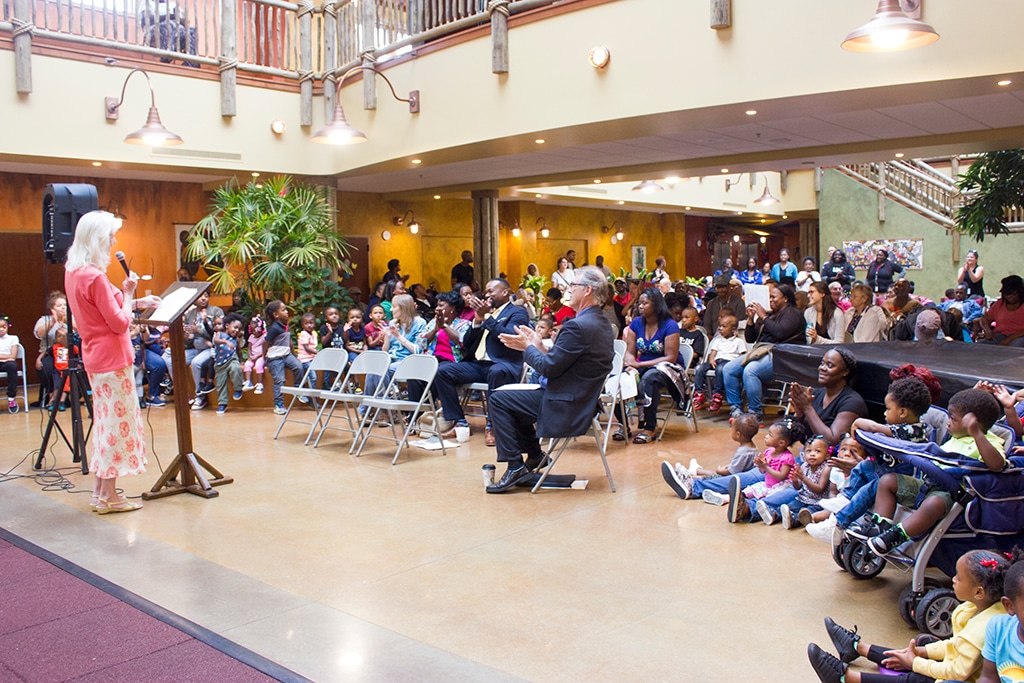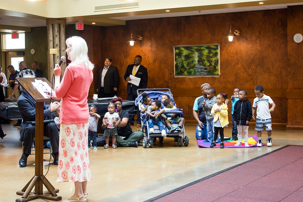 Pastor Ollie Taylor of Hopewell Missionary Baptist Church and Fr. Byron Haaland led a blessing of the construction site. Entertainment was provided by children from St. Ann Center’s Summer Camp program, the Omo Orisha drum and dance group, and an intergenerational choir made up of the center’s day care children and adult clients.