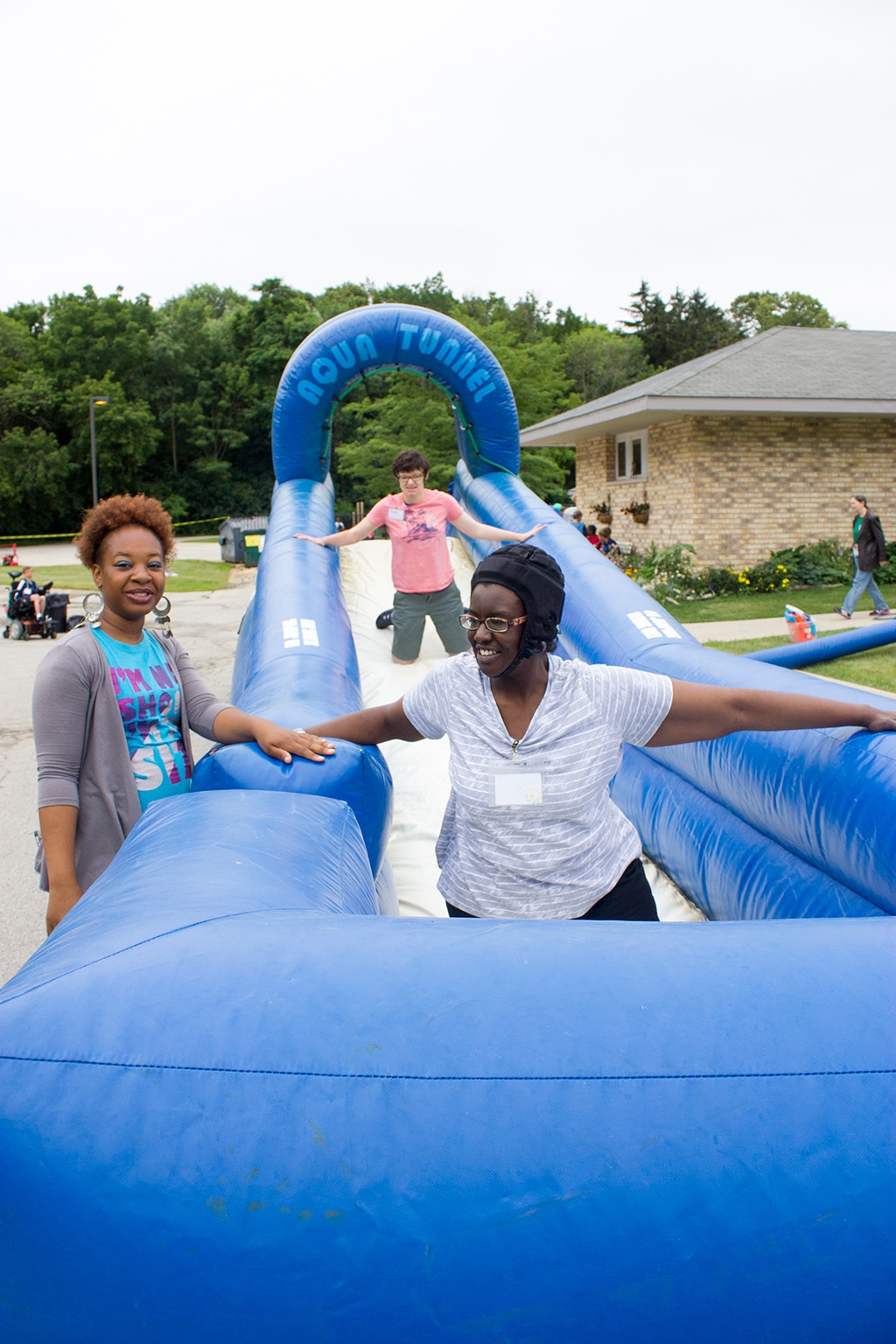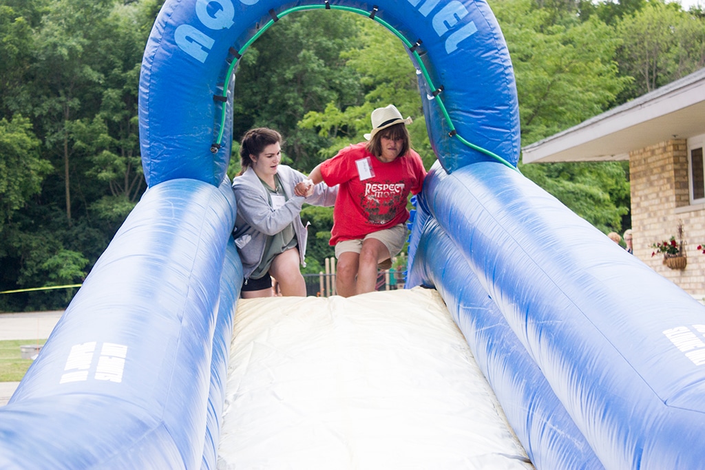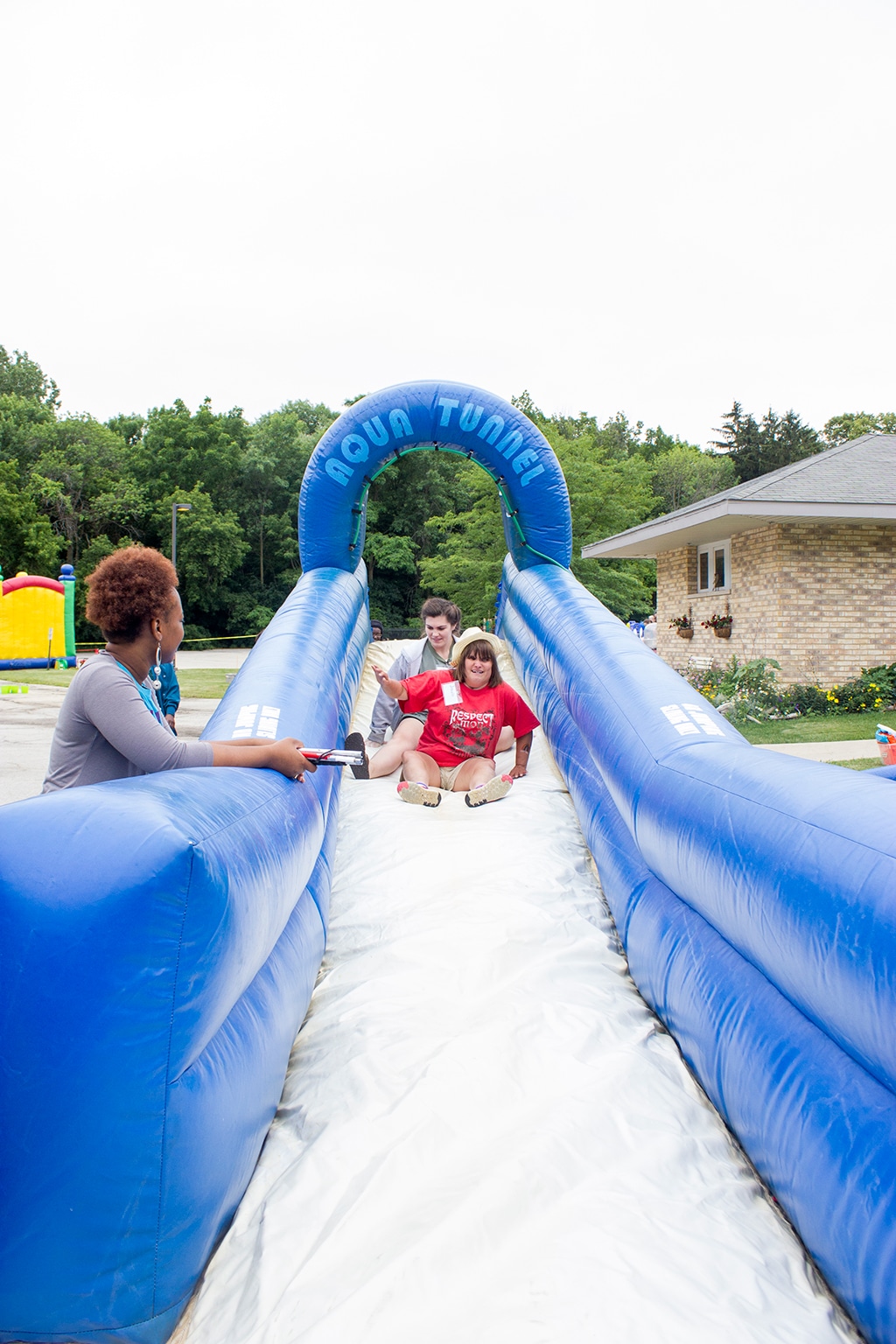 A wet and wonderful time was had by all at St. Ann Center’s Splish Splash Day at our Stein Campus on July 14. The annual celebration of summer offered activities for all ages, including a bounce house and aqua slide plus carnival games. Kids from our childcare and summer camp programs and adult day care clients dove into the fun that kicked off in the morning and lasting well into the afternoon.