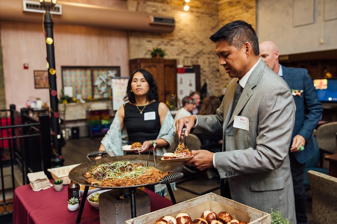 In the campus’s greenery and fairy light-filled atrium, attendees perused silent and super-silent auction items ranging from tropical getaways to Packers and Brewers adventures to luxurious local date nights and dining experiences, and more. Guests also shopped for beautiful one-of-a-kind jewelry pieces created by St. Ann Center founder Sr. Edna Lonergan, noshed on heavy appetizers, sliders for every taste, and decadent desserts, while sipping delicious cocktails and mocktails, all provided by Brazen Standard hospitality group.