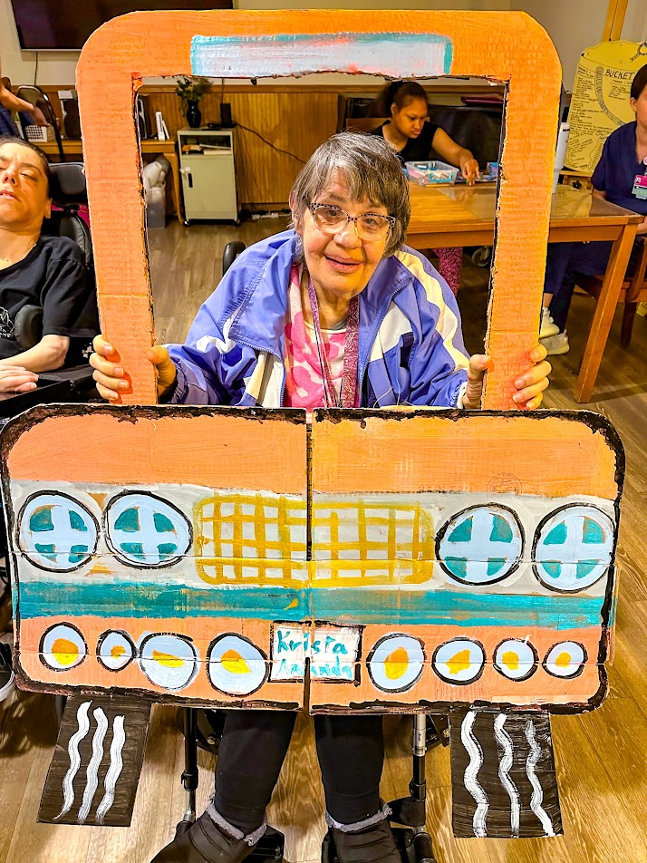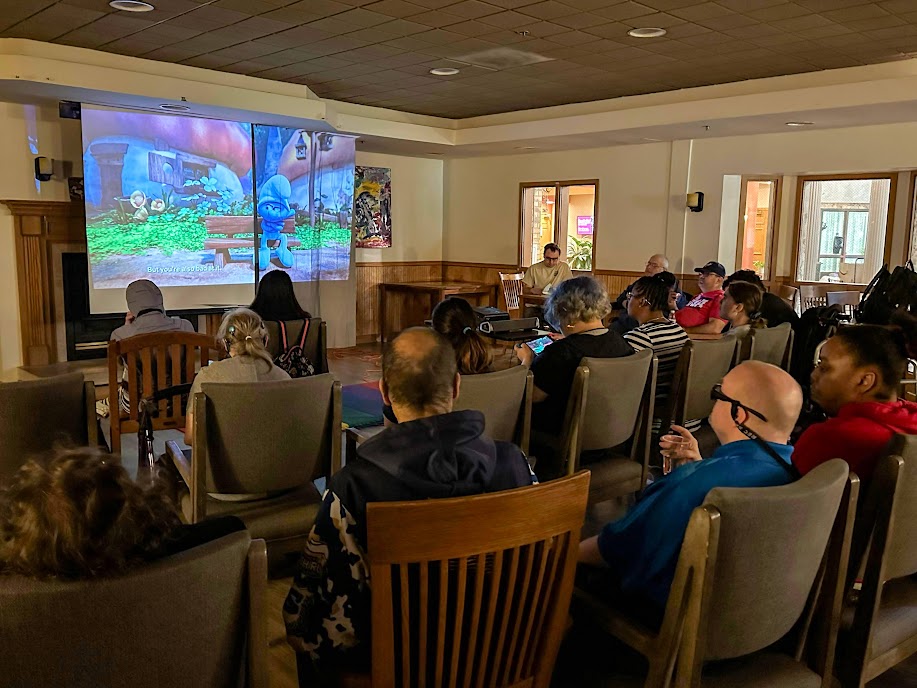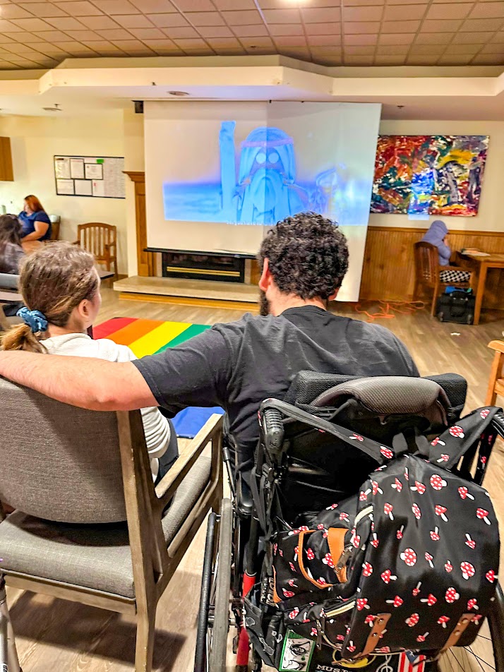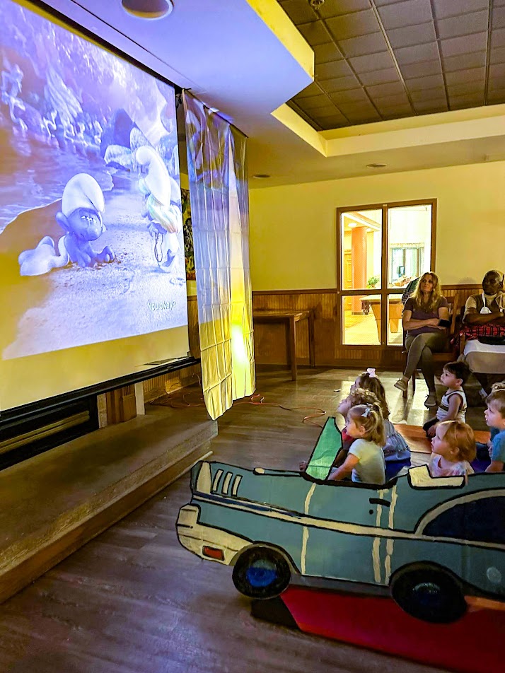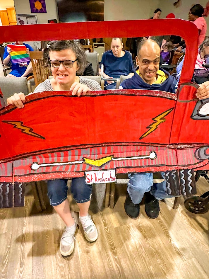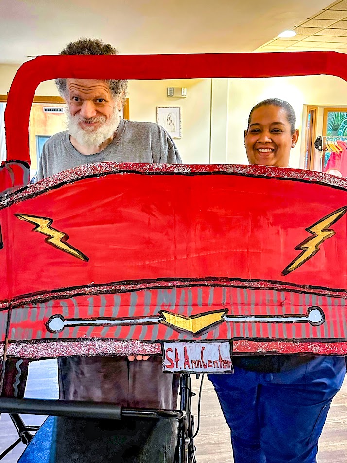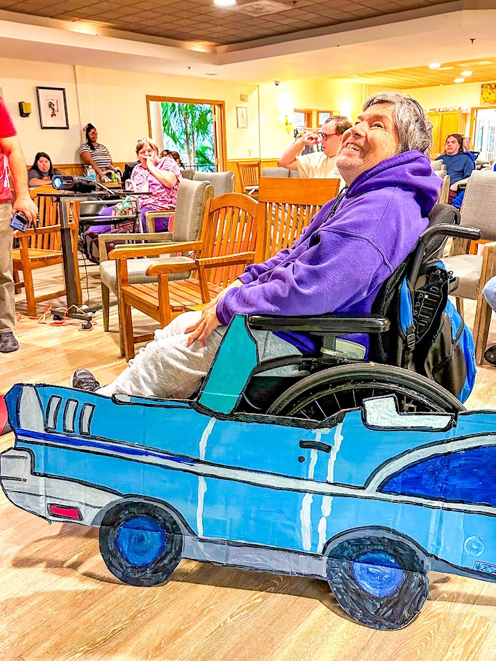 And when the adult care clients at St. Ann Center Stein Campus learned that June 6th was the 90th annual National Drive-In Movie Day, honoring the day Richard Hollingshead opened the first drive-in movie theater, they knew a celebration was in order. Inspired by his mother’s discomfort sitting in a regular theater seat, Hollingshead opened his Camden Theater in Pennsauken, New Jersey, so people of all sizes and statures could enjoy a movie comfortably. And that’s just what happened at St. Ann Center’s “drive-in” too.